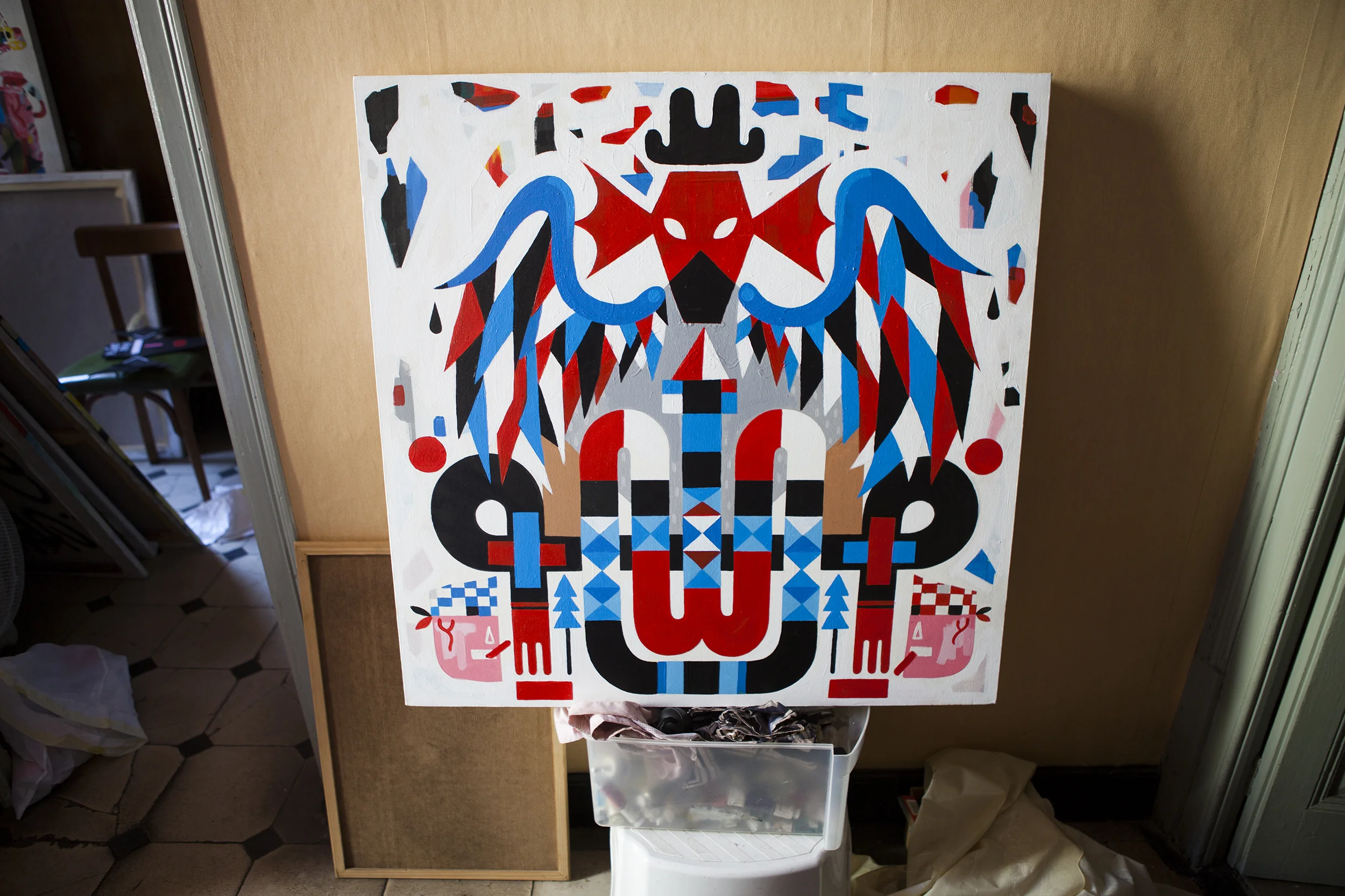 Keis 1975.Comienza a pintar letras en la calle por el año 89, unos años mas tarde sobre otros soportes,telas, esculturas...Pero ya plasmando un mundo de símbolos convertidos en figuras hasta llegar al día de hoy, configurando un estilo propio y un lenguaje personal mediante la combinación de formas, colores y figuras, sin dejar de lado la pintura en la calle realizando este mismo estilo en murales de Barcelona generalmente que es su ciudad natal.